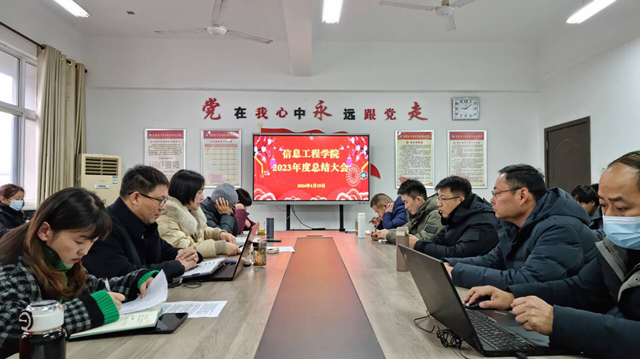 本网讯 奋斗中送走岁月,实干中书写成绩。为总结过去一年的工作,激励全体教职工在新的一年中更加坚定信心、鼓足干劲、砥砺奋进、争创佳绩,全面打好“收官战”、迎接“开局战”,1月19日下午,信息工程学院在南306会议室召开2023年度总结大会,全体教职工参会。会议由党总支书记、院长朱正月主持。