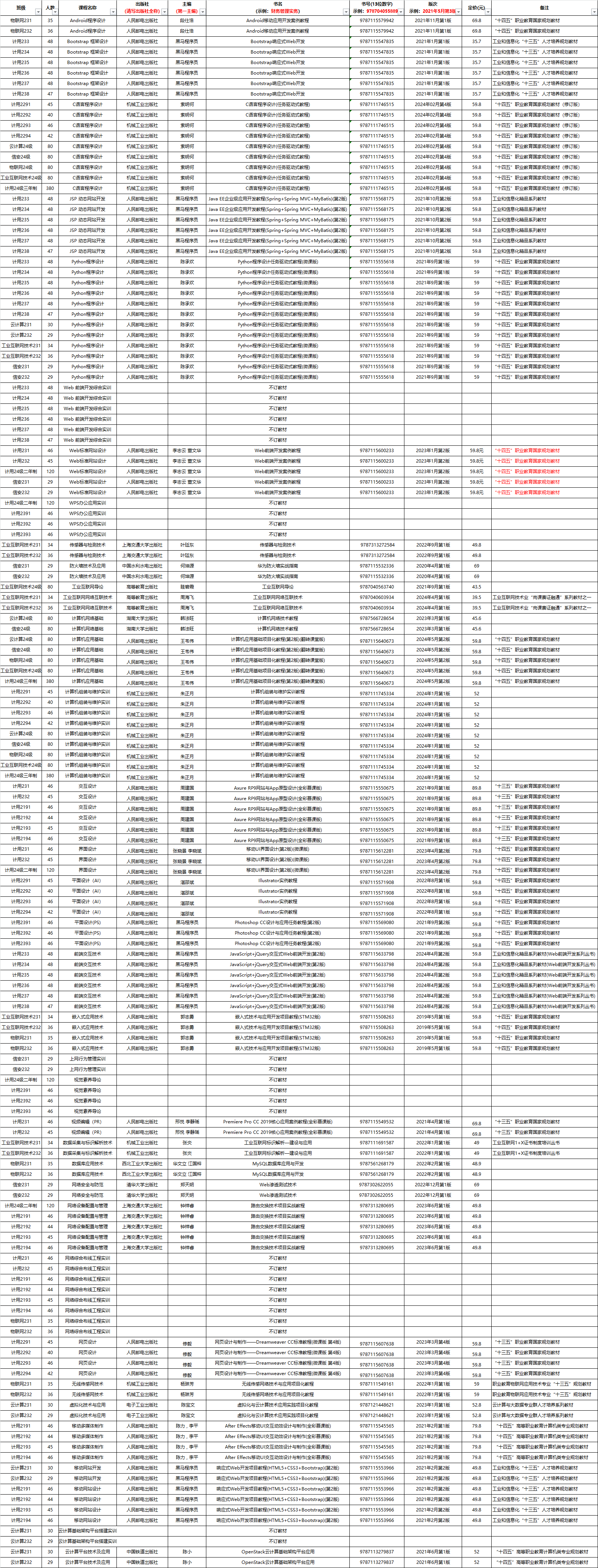 经信息工程学院教材选用委员会进行初审,确定2024-2025学年第一学期计算机应用技术等5个专业共选用教材30种,其中国家级(省级)规划教材14种,其他类型(含行业规划)16种。现将教材选用情况公示如下: