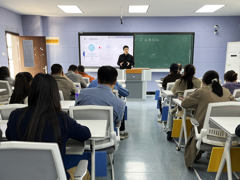 本次教学公开示范课由计算机应用教研室教师钱政主讲,讲授内容是《Python程序设计》课程中的“选择结构及其应用”模块,分为说课和授课两个环节。在说课环节,钱政围绕课程的性质与作用、教学内容、学情分析、教法与学法、教学过程和教学反思等方面,对课程进行了深入的剖析。在授课环节,钱政通过课堂签到、作业点评、导入新课、新课讲授、随堂练习、总结答疑和布置作业等环节,流畅地完成了一堂课的教学过程,展现了扎实的教学功底和对课堂的把握能力。