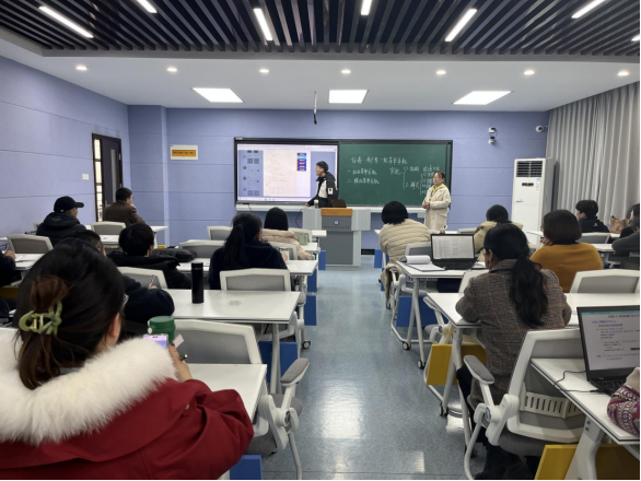 本网讯 为继续发挥优秀教师的课堂教学引领和示范作用,促进教师间的相互学习交流,深化课程教学改革与创新,提升课堂教学质量与教师业务水平,12月4日下午,信息工程学院在信息中心南302智慧教室成功开展了本学期第4次教学示范公开课观摩听课活动。学院全体教师和各兄弟教学单位的教师代表近70人现场观摩,活动由副院长胡北辰主持。