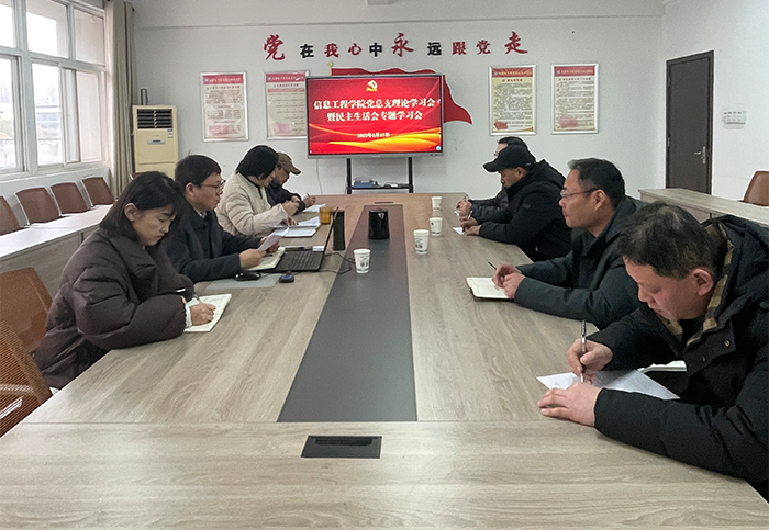 本网讯 为扎实开好2024年度领导班子民主生活会,2月17日下午,信息工程学院党总支召开理论学习会暨2024年度民主生活会会前集中学习会,专题学习习近平总书记在中共中央政治局民主生活会上的重要讲话精神等内容,研究部署民主生活会推进落实工作。党总支班子全体成员、各党支部书记、各教研室主任参会,会议由党总支书记、院长朱正月主持。