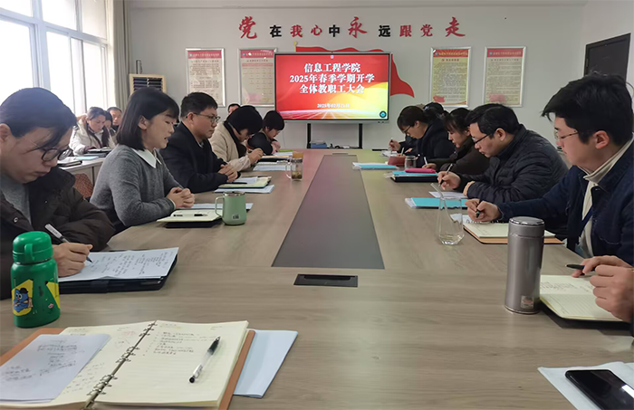 本网讯 新春伊始,万象更新。为全面落实好学院开学工作会议精神,部署安排部门新学期工作,确保各项工作开好局、起好步,2月21日上午,信息工程学院在南306会议室召开2025年春季学期开学工作会议,全体教职工参会。会议由党总支书记、院长朱正月主持。