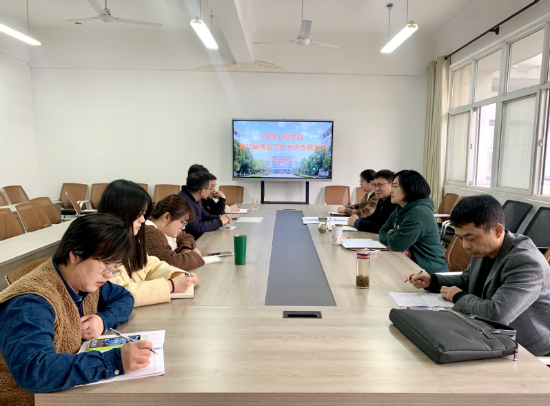 本网讯 为贯彻落实学院就业工作会议精神,扎实推进毕业生就业创业工作,推动2025届毕业生高质量充分就业,3月24日下午,信息工程学院在南306会议室召开就业工作专班专题会议,就业工作专班全体成员参会。会议由党总支书记、院长朱正月主持。