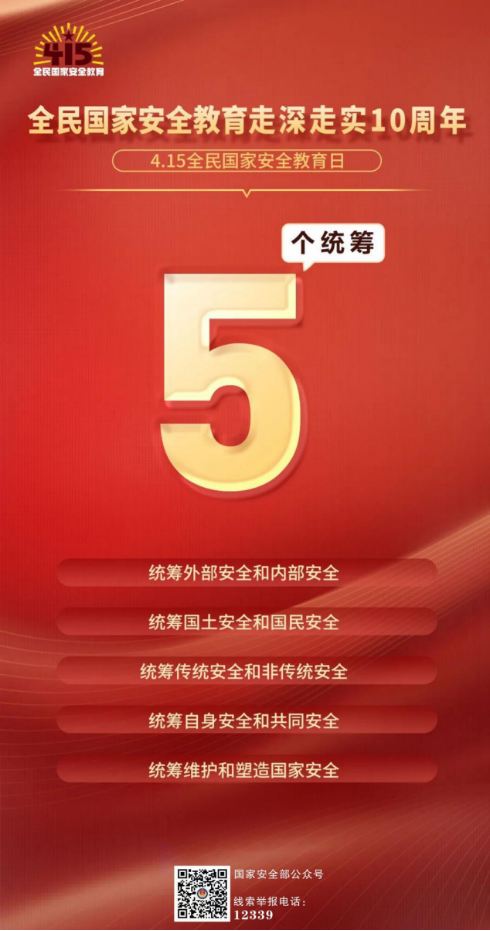 2025年是《中华人民共和国国家安全法》颁布施行10周年,今年4月15日是第十个全民国家安全教育日。经过十载的风雨兼程,国家安全事业在党的领导下取得了历史性成就,从理论创新到实践深化,从法治观念到全民意识,每一步都凝聚着无数守护者的心血与智慧。今年的主题“全民国家安全教育 走深走实10周年”,不仅是对过往成就的总结,更是对未来蓝图的描绘——国家安全需要全民参与,安全观念需要不断深化,在发展中筑牢防线,在实干中续写华章。