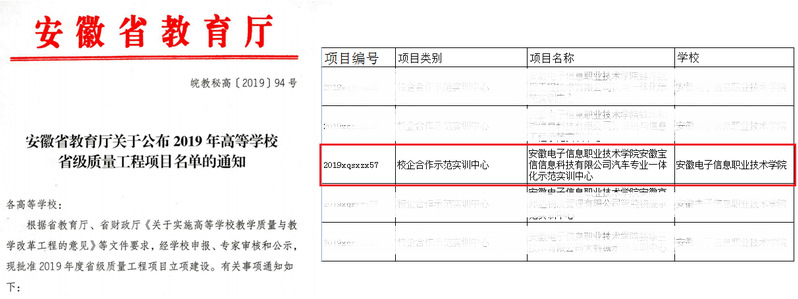 2. 省级校企合作示范实训中心 必赢766net手机版安徽宝信信息科技有限公司汽车专业一体化示范实训中心