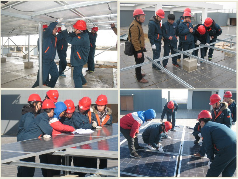 依托校企合作企业,建成了具有“校中厂、厂中校”特色的太阳能技术实验园、光伏组件加工实训室和风光互补发电系统安装与调试等特色校内实践基地。以岗位能力培养为教学目标,实现教学目标岗位化;以工作任务作为教学内容,实现教学内容任务化;引入企业技术团队模式,采用实组项目教学,以实际光伏发电系统或光伏产品(如太阳能路灯、太阳能草坪灯、太阳能照明灯、分布式光伏电站等)为操作对象,让学生承担实际工作任务,引导学生进入真实的职业环境,实现对学生光伏产品设计、生产、安装、调试、维护等能力的一体化培养,践行“校企合作、工学交融”人才培养模式。