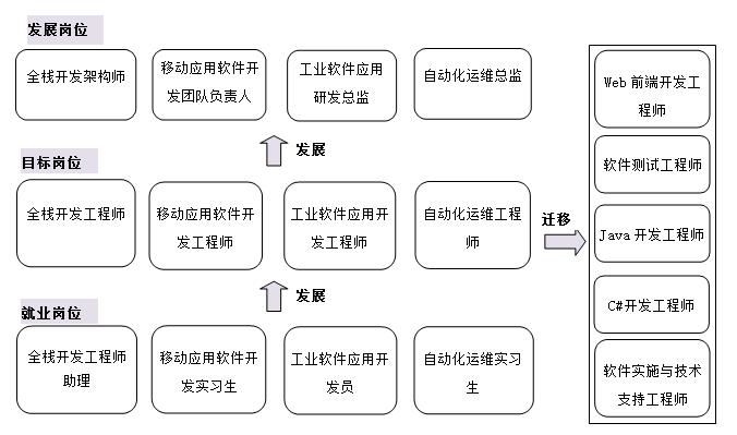 本专业培养理想信念坚定,德、智、体、美、劳全面发展,具有一定的科学文化水平、良好的人文素养、职业道德和精益求精的工匠精神,掌握本专业知识和技术技能,面向软件和信息技术服务业的计算机软件工程技术人员、计算机程序设计员、计算机软件测试员、嵌入式系统设计工程技术人员等职业群,能够从事Web全栈开发、Java软件开发、工业软件应用开发、移动互联应用程序开发、移动智能设备开发、Web前端开发、软件测试、自动化运维和软件技术支持与维护等工作,具备较强的创新意识、创业精神、创新创业能力和社会责任感的有可持续发展能力的高素质技术技能人才。