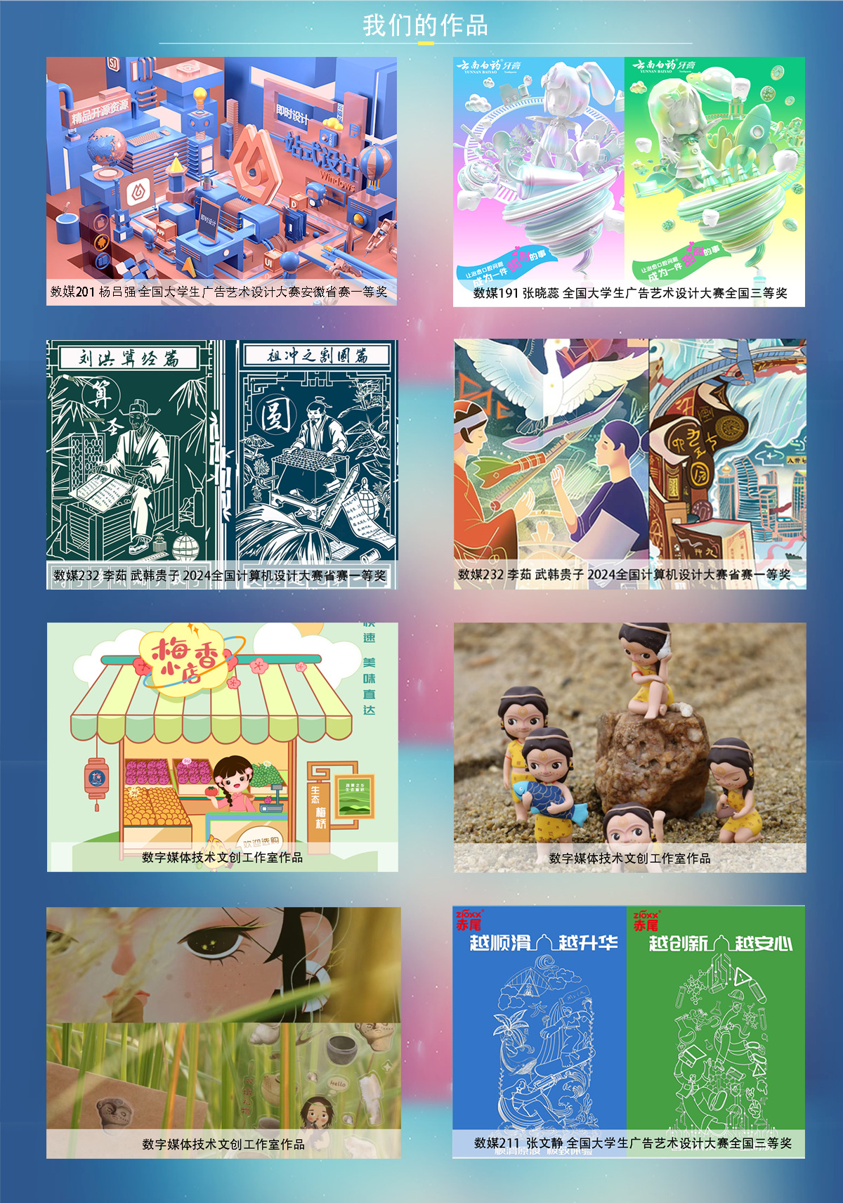 l  数字艺术教学模式连续四年荣获安徽省教学成果一、二、三等奖若干、成立大师工作室。